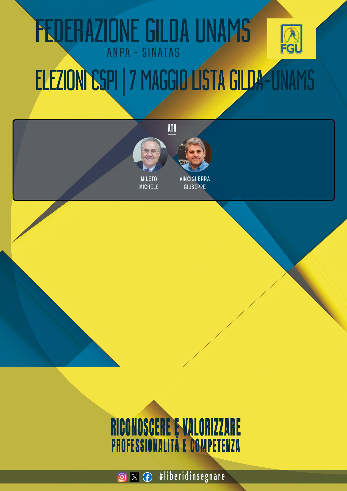 LOCANDINA 3.jpg LOCANDINA 4.jpg LOCANDINA LISTA GILDA-UNAMS ATA ELEZIONI CSPI.jpg LOCANDINA LISTA GILDA-UNAMS DOCENTI ELEZIONI CSPI.jpg